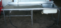 Zlew 1 komorowy z blatem + półkaZlew 1 komorowy z blatem + półka ze stali nierdzewnej Wymiary całego blatu: Długość: 230 cm Szerokość: 80 cm Wysokość: 80 cm Wymiary komory: Głębokość: 30 cm Długość: 60 cm Szerokość: 60 cm ...